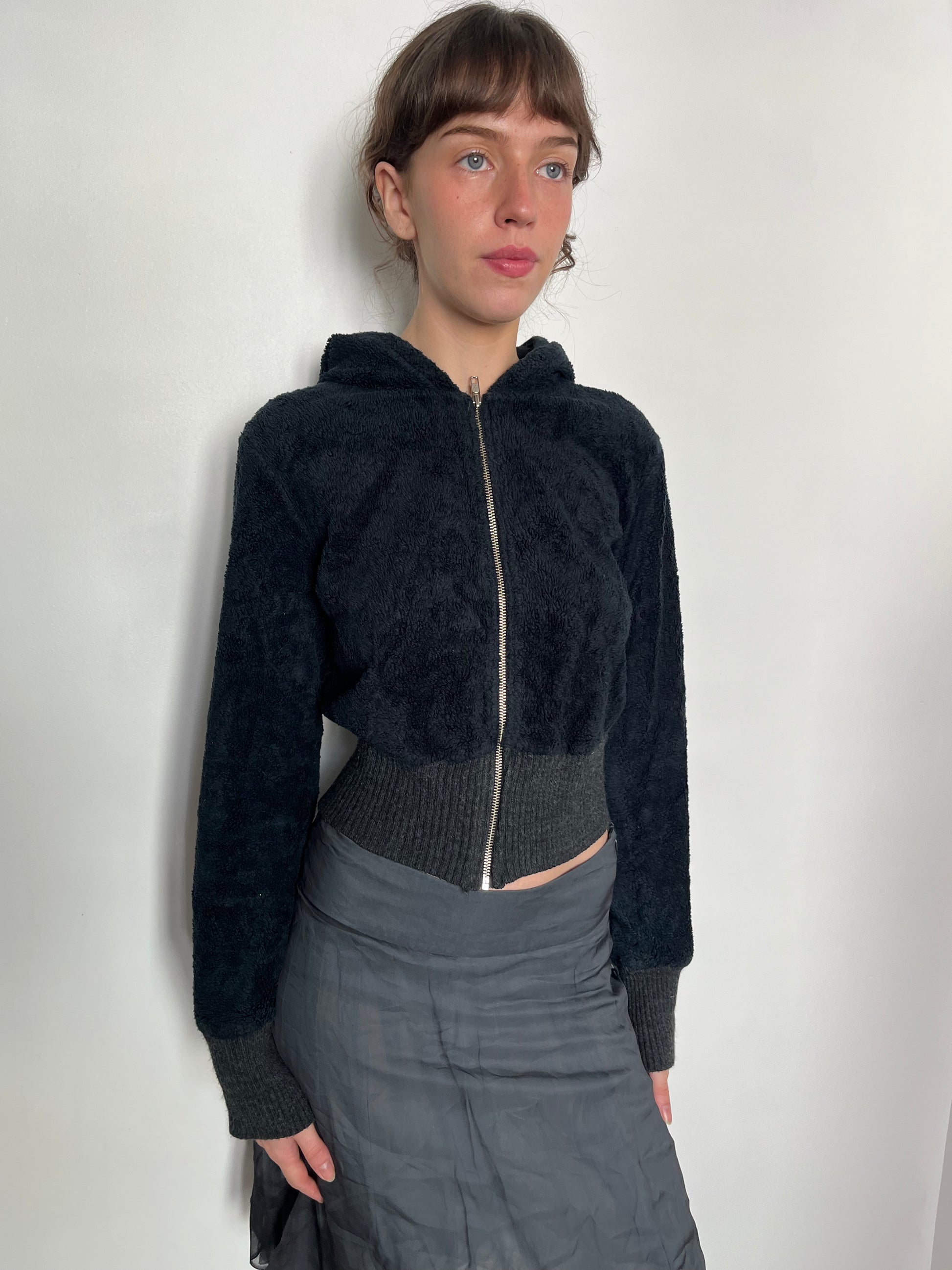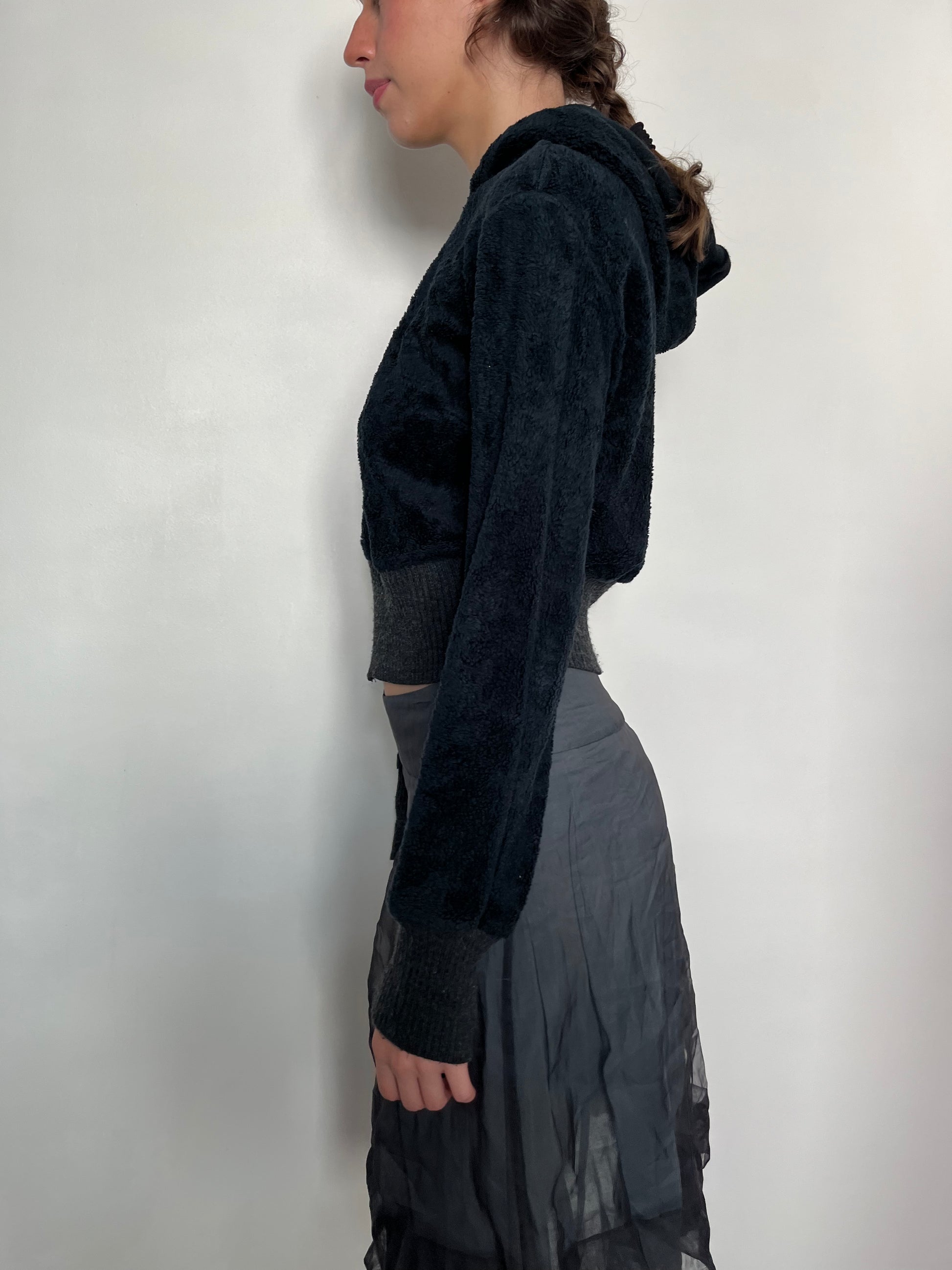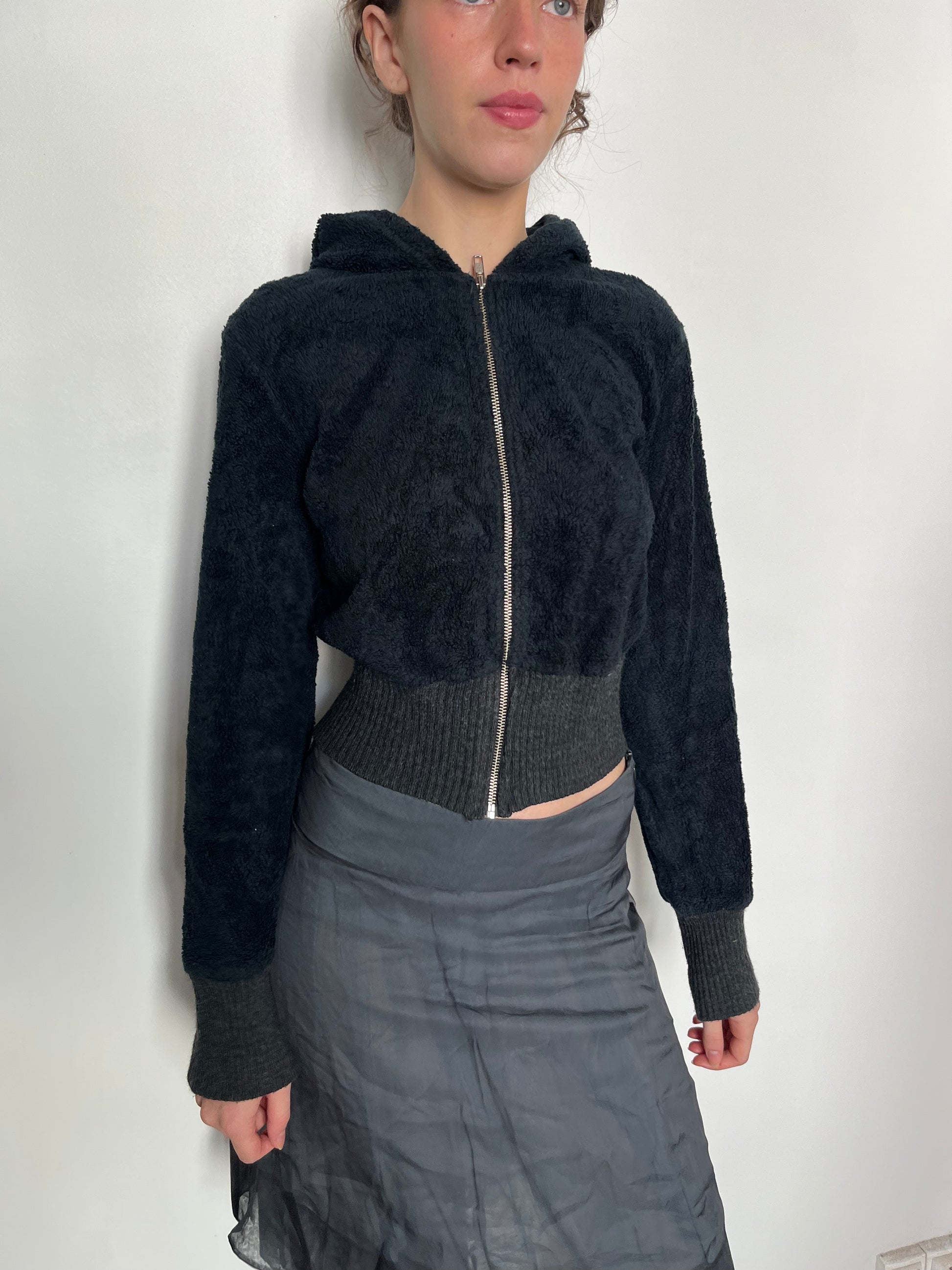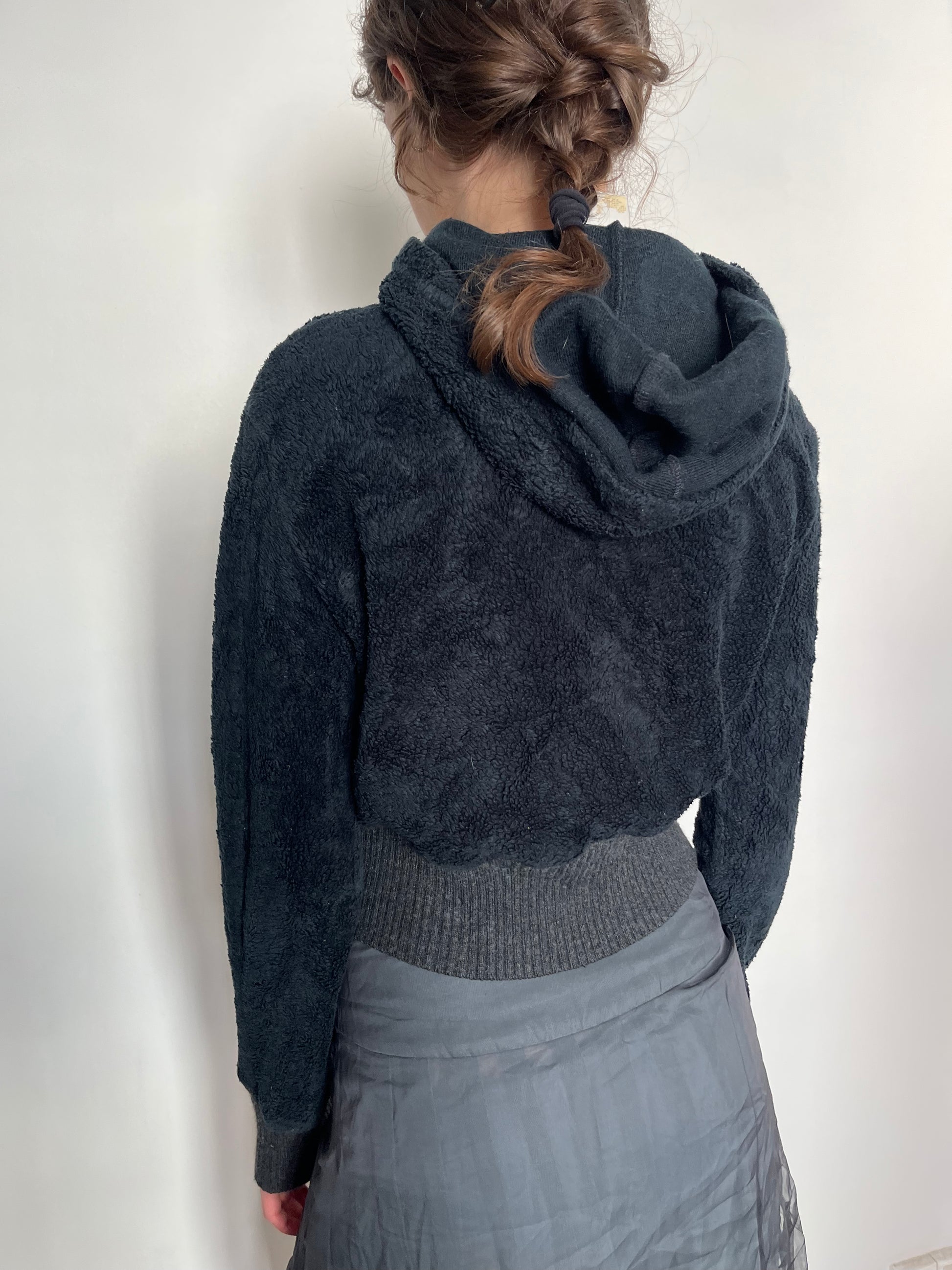black fluffy hoodie