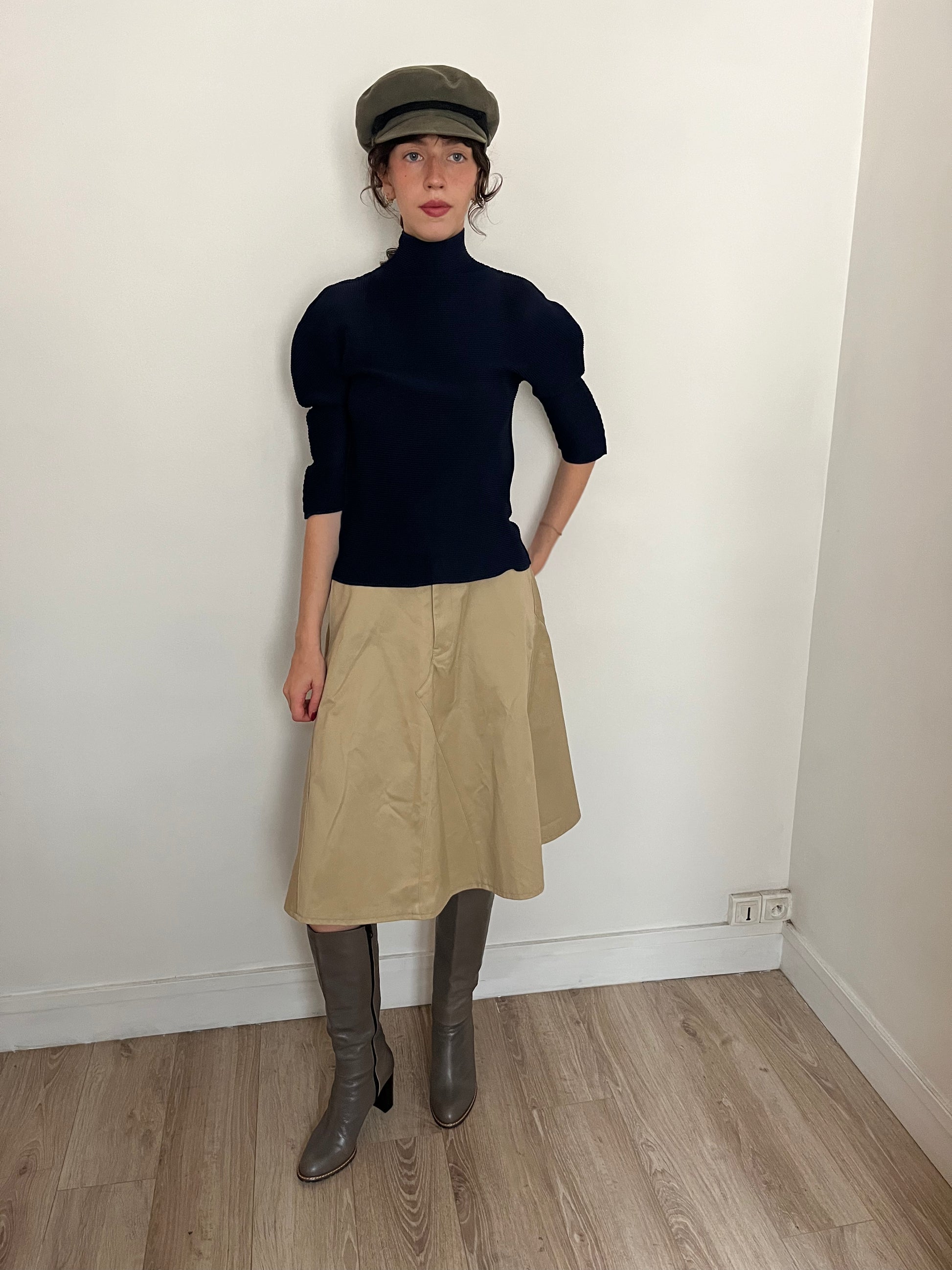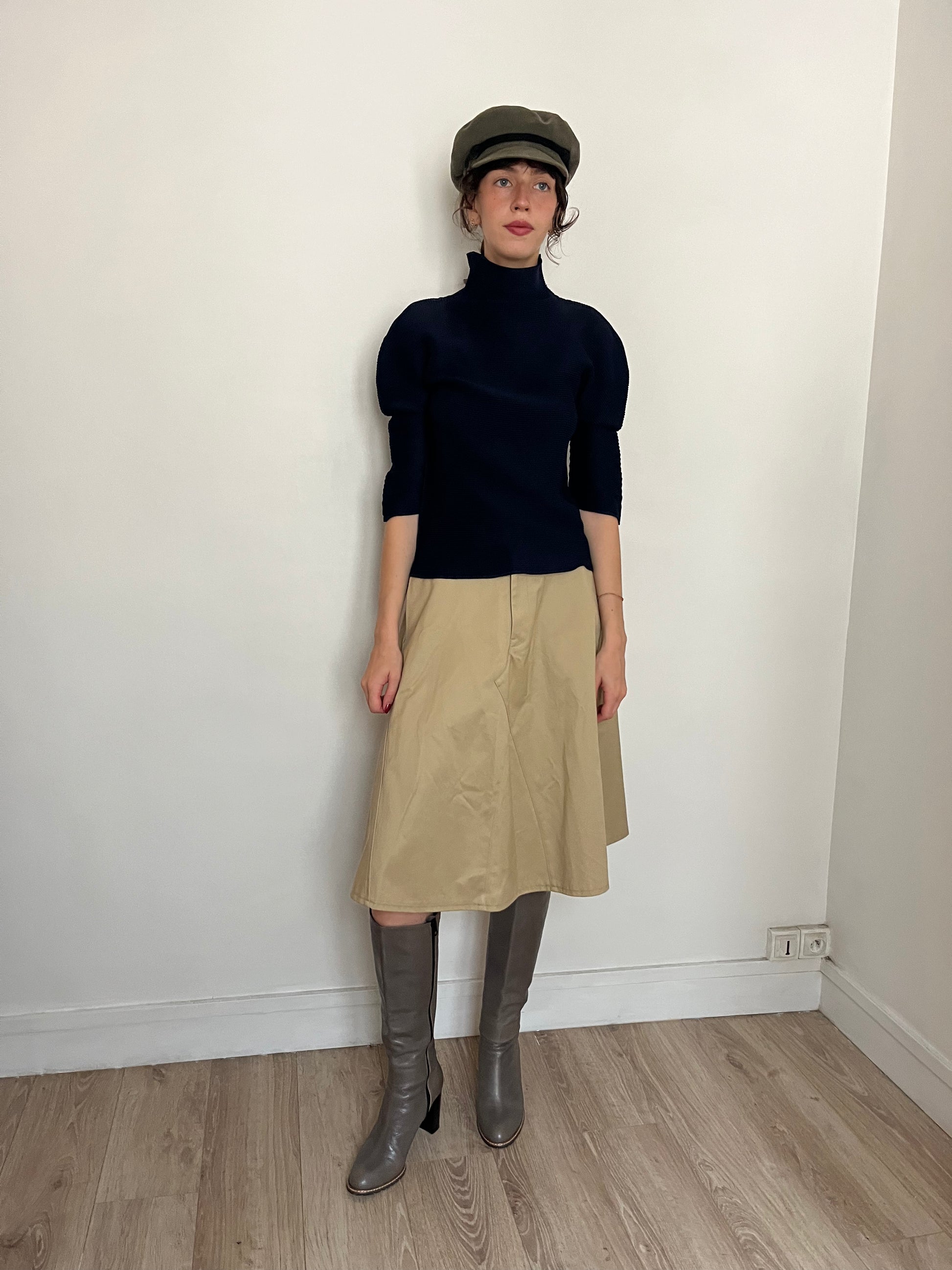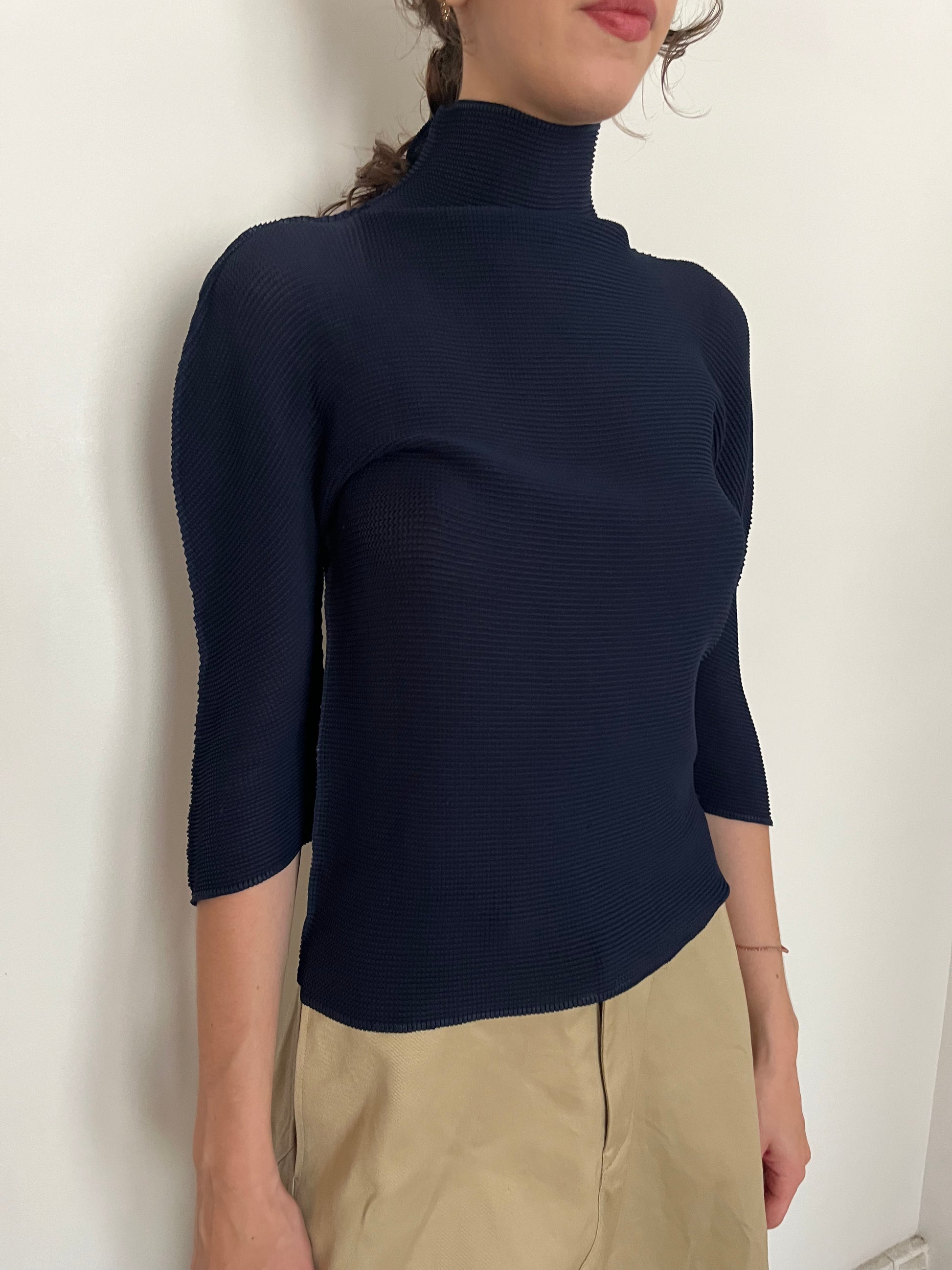 navy pleated top