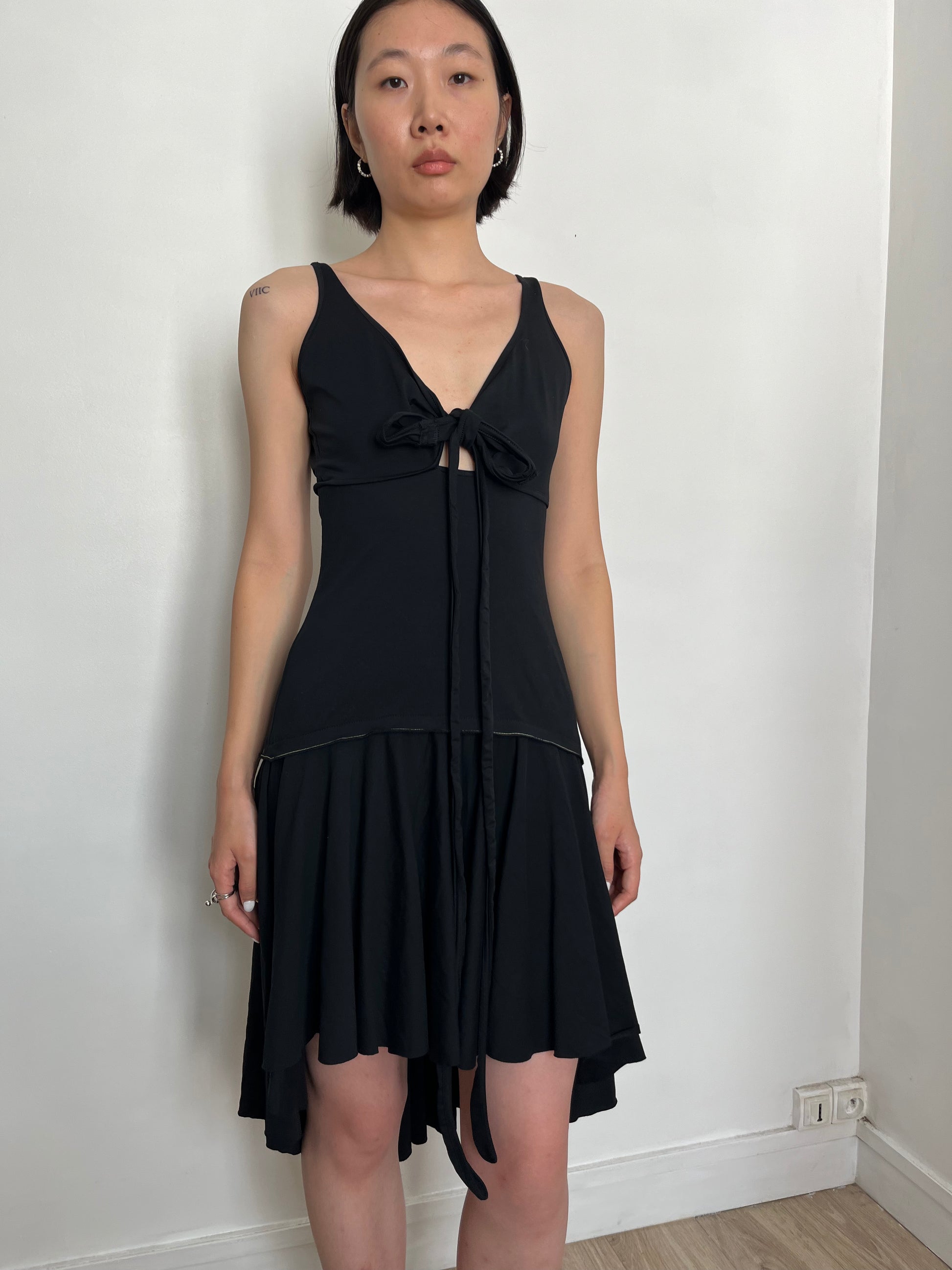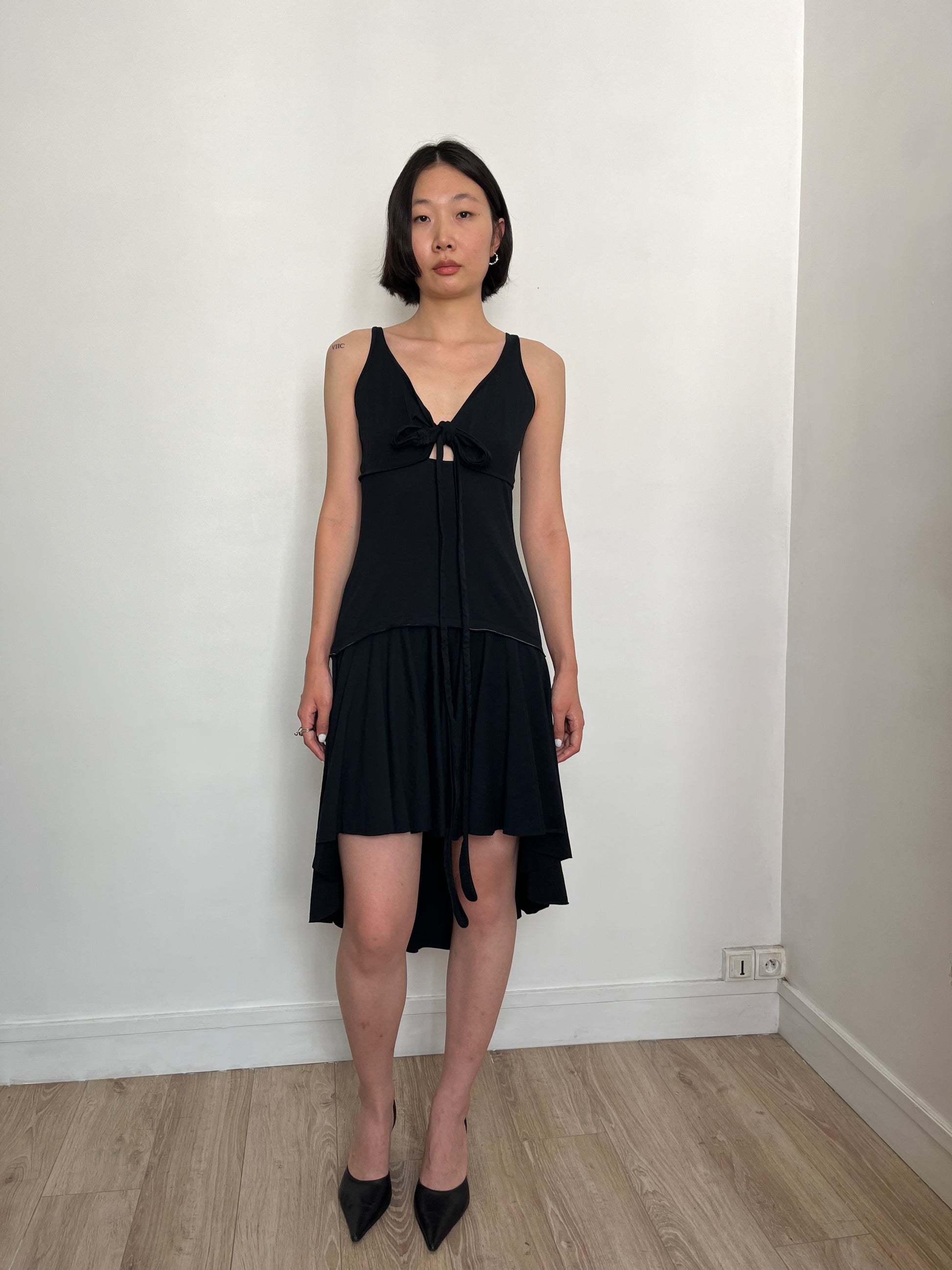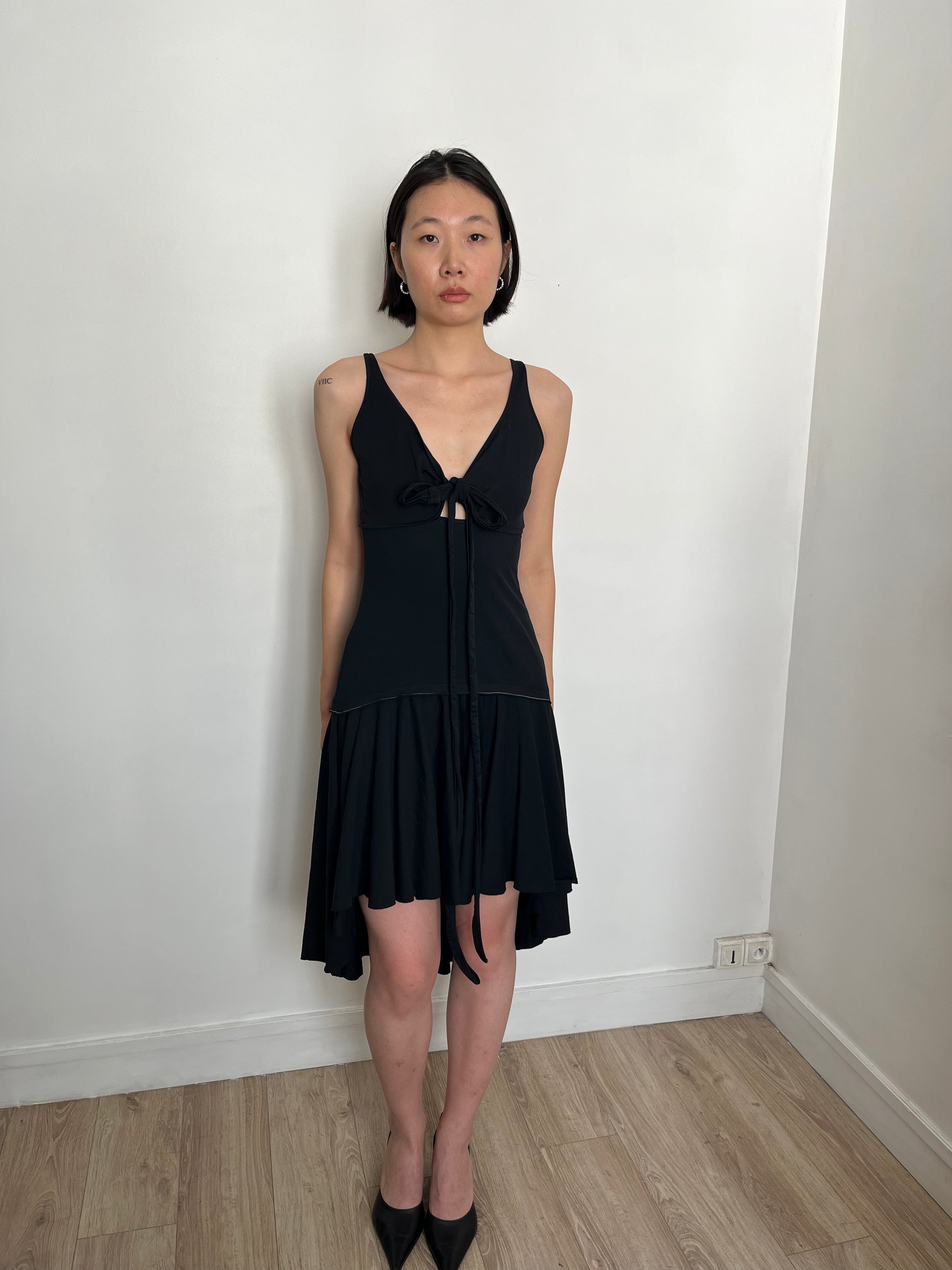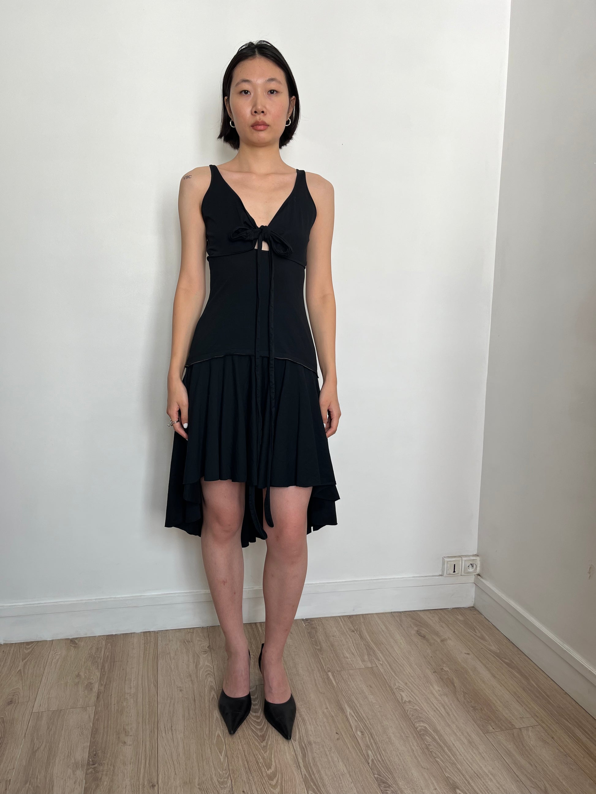 black dress with bow front
