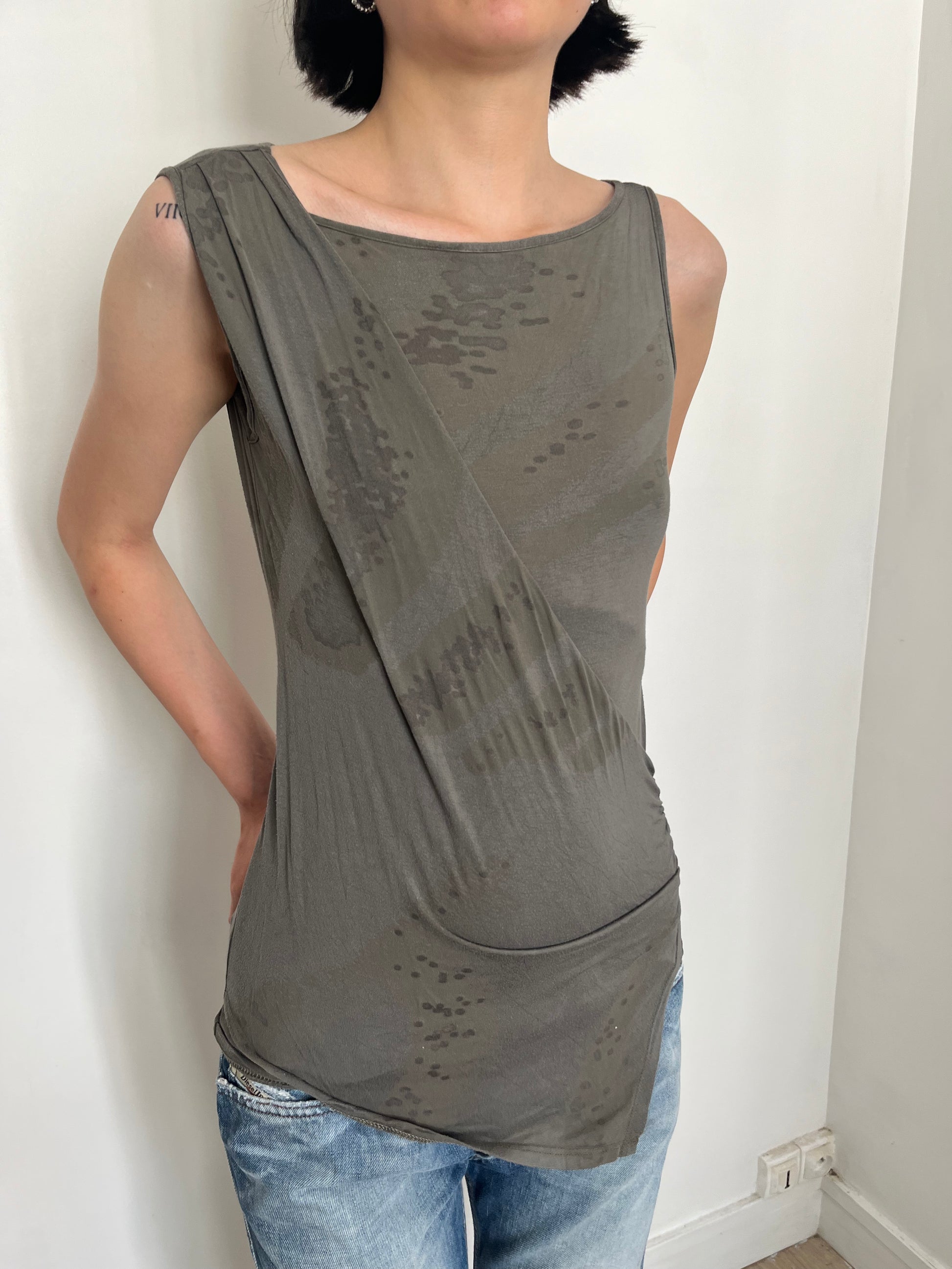 military green print tank